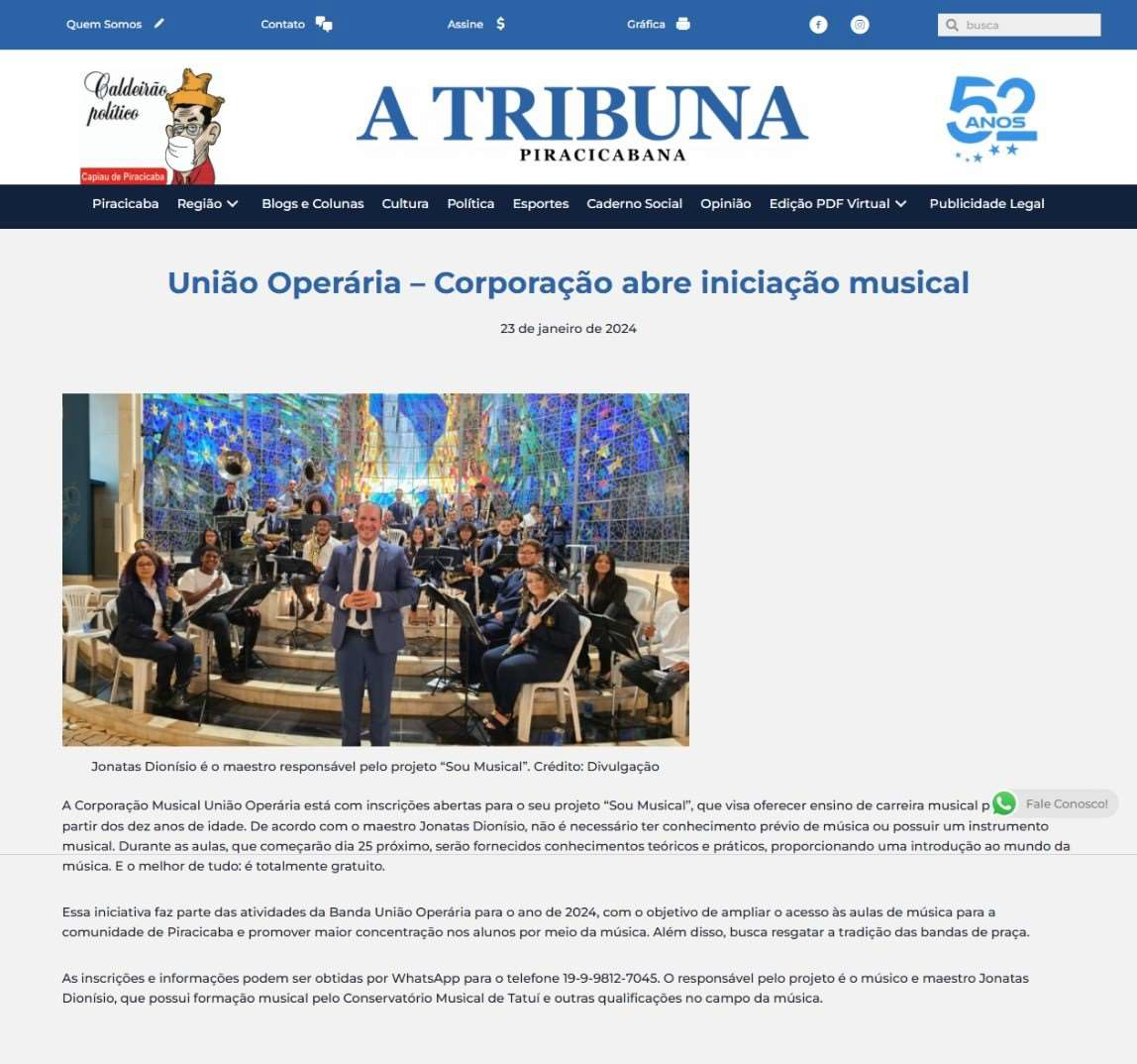 VEÍCULO DE IMPRENSA: https://www.atribunapiracicabana.com.br/2024/01/23/uniaooperaria-corporacao-abre-iniciacao-musical/